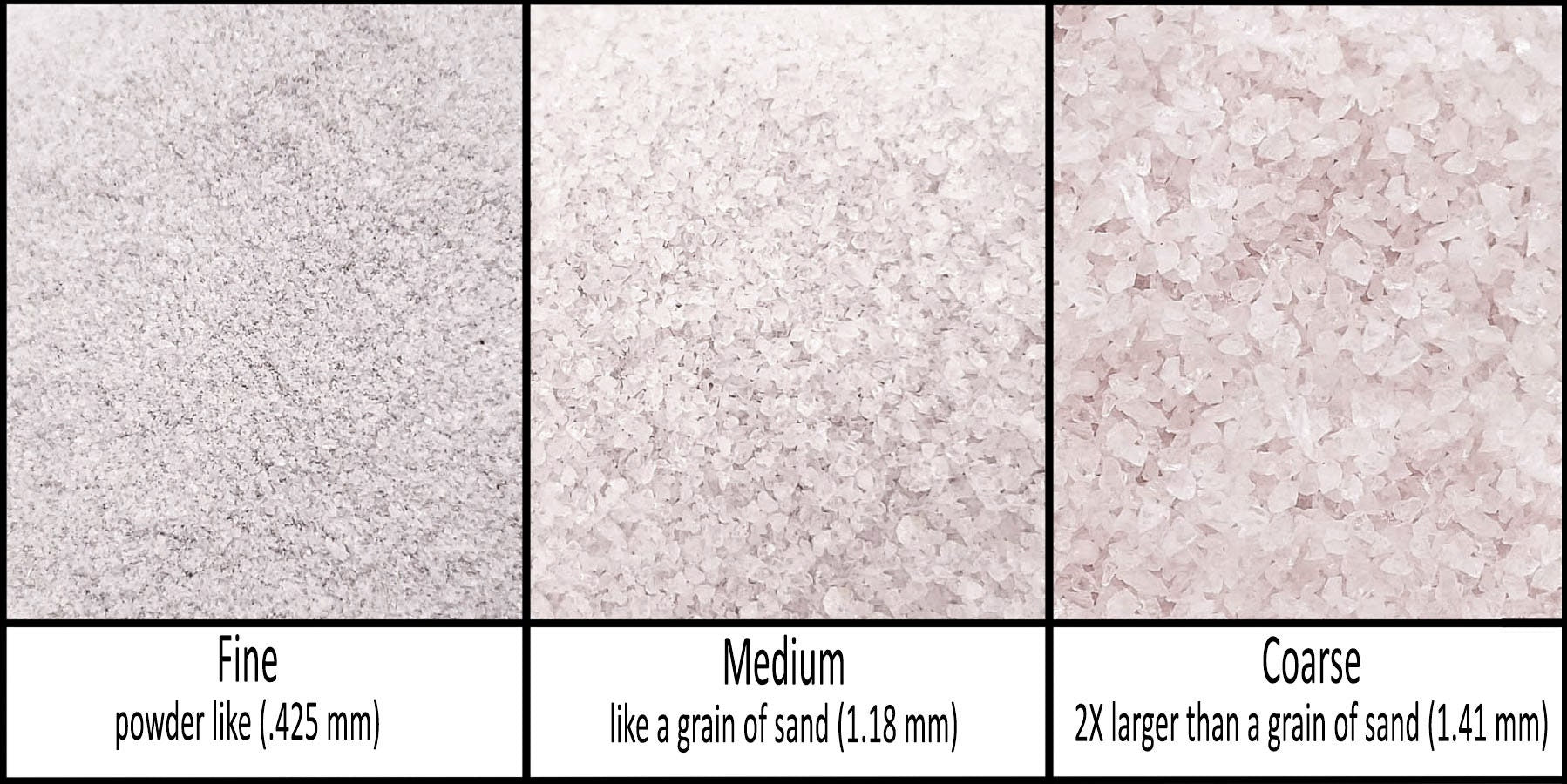 - Crushed and separated into Fine(0.425mm), Medium(1.18mm) and Coarse(1.41)