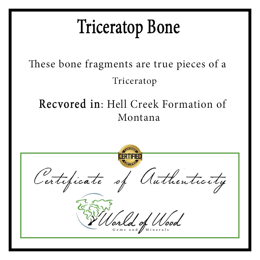 - 100% Natural, genuine triceratops bone with no added resins or dyes